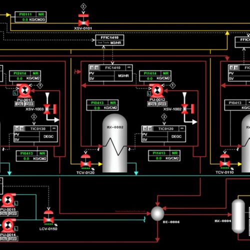 • Different variables are controlled according to the logic and different tag numbers are given to different motors, valves, sensors etc. It is provided with a monitor who displays the process and instrument diagram & also the live status of process parameters.